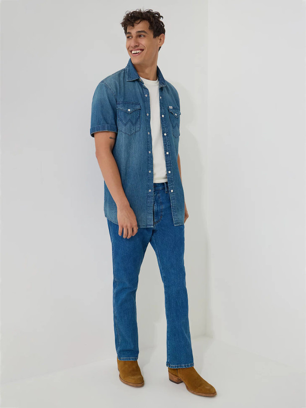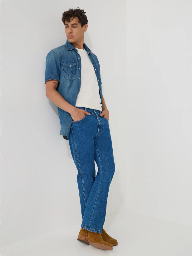 شلوار جین بوتکات مردانه Wrangler ترکیبی از استقامت و جذابیت استایل است. طراحی آن بر اساس مدلهای کلاسیک دهه۷۰ میلادی شکل گرفته، اما با خط دوخت و فرم فیت امروزی بازطراحی شده است.
