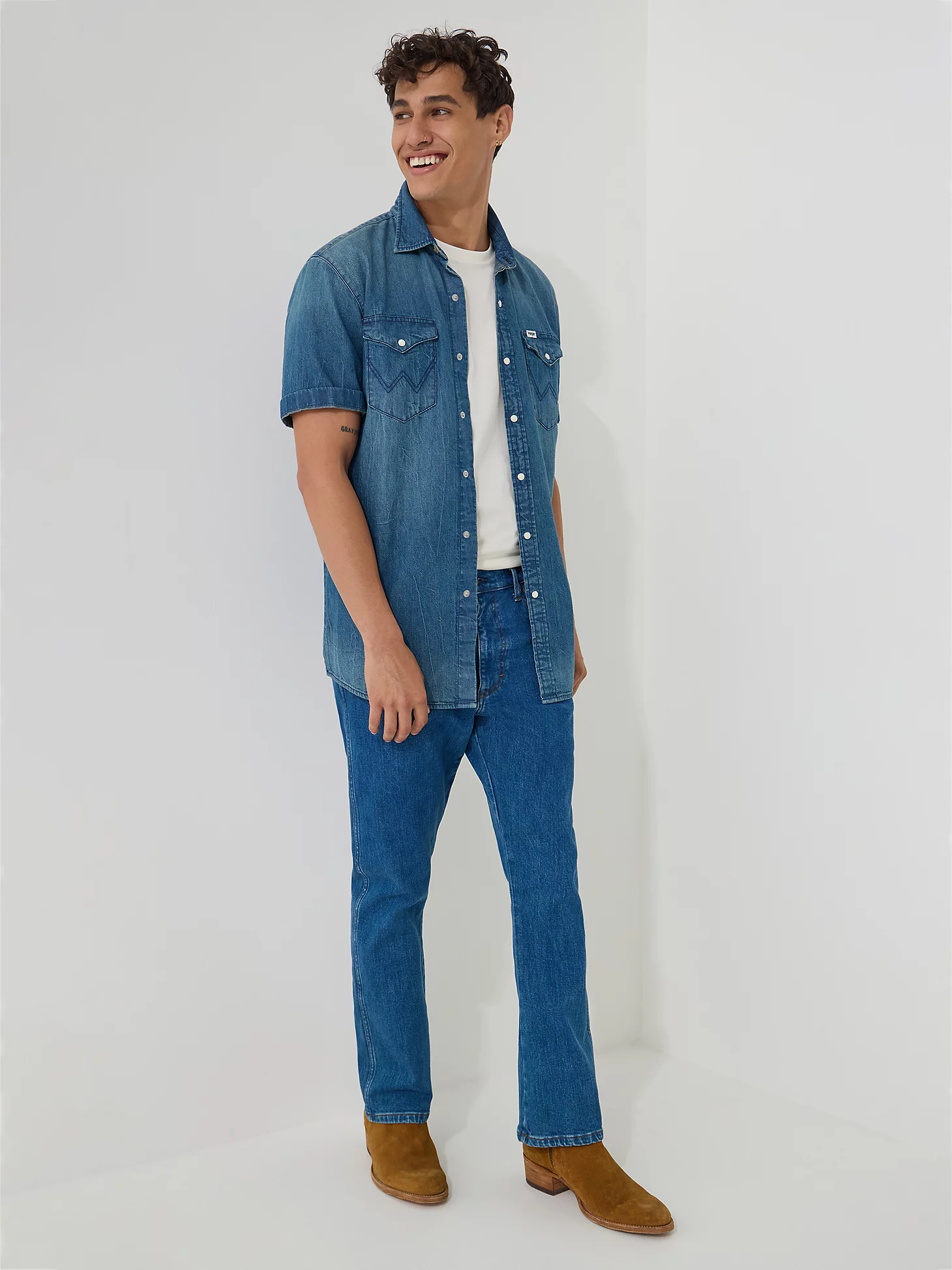 پارچهی دنیم سنگین و شستهشده، دوام بالایی دارد و با گذر زمان فرسوده نمیشود، بلکه شخصیت میگیرد – چیزی که مخصوص برند Wrangler است.