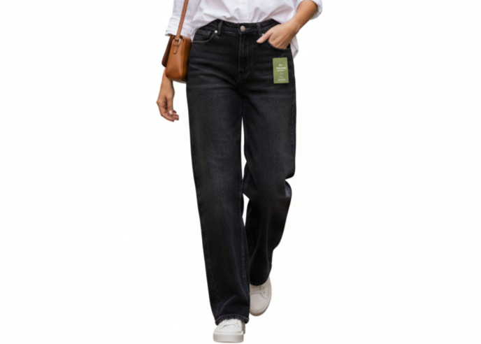شلوار جین زنانه lng Denim Woke مدل Mom Style (مشکی)
