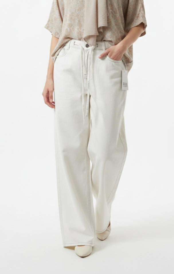 شلوار جین بگ سفید کمر کش برند denim